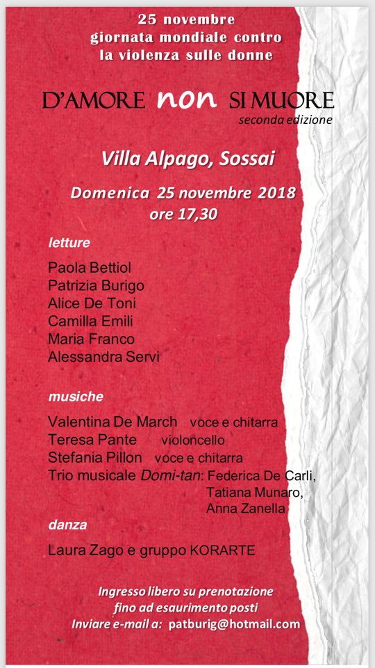 Per il secondo anno consecutivo il Gruppo KORARTE domenica 25 novembre sarà ospite dell’evento d’Amore NON si muore in occasione della giornata mondiale contro la violenza sulle donne.